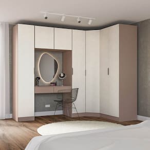 1x Guarda Roupa Modulado 100% MDF de Canto Oblíquo Orion CabeCasa MadeiraOriginals Mocha/Linho