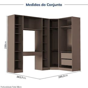 1x Guarda Roupa Modulado 100% MDF de Canto Oblíquo Orion CabeCasa MadeiraOriginals Mocha