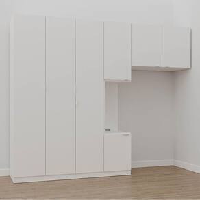 O Guarda Roupa Modulado de Solteiro 7 portas 3 peças Hera CabeCasa foi desenvolvido para trazer a experiência de ter seu móvel customizado de acordo com a necessidade do seu espaço. O conjunto conta com módulo de três portas, mesa de cabeceira esqueda e ponte 2 portas. Acabamento da Prateleira: Pintura UV Escala de Brilho da Prateleira: Semi-Fosco Possui Cabideiros: 01 Acabamento da Gaveta: Pintura UV Escala de Brilho da Gaveta: Semi-Fosco Possui Organizador de Gaveta: Não Acabamento da Porta: Pintura UV Escala de Brilho da Porta: Semi-Fosco Material do Puxador da Porta: Metal Acabamento dos Pés: Pintura Altura dos Pés: 8 cm Altura Máxima dos Pés: 8.0000 Ambiente Principal: Quarto codigo_ean: 7909903468722 Complexidade da Montagem: Alta: deve ser montado por um montador especializado Cor: Branco Geada/Cromado Cor do Produto: Branco Geada/Cromado Cor Flex: Não Cor Interna: Branco Escala de Brilho: Semi-Fosco Gaveta com Chave: Não Informações Complementares: Puxador Metálico Acetinado, portas em chapa de 18mm com dobradiças com amortecimento, gavetas com corrediça telescópica, fundos em 6mm, cabideiros em aço cromado suportando até 10kg e Maleiro até 25kg. Itens Inclusos: 1 Guarda Roupa 3 Portas, 1 Mesa de Cabeceira Esquerda, 1 Ponte 2 Portas, Manual de montagem e Kit ferragens Linha ou Coleção: Hera Manual de Montagem e Instalação: https://product-hub-prd.madeiramadeira.com.br/876520/documents/6f0fb084-b619-40c7-97fb-07fb4cb699e5tas3peasheracomesemespelho.pdf Material da Gaveta: MDF/MDP Material da Porta: MDP Material da Prateleira: MDP Material dos Pés: MDP Material Principal: MDP modular: Não Montagem Flex: Para o módulo de 3 portas, gaveteiros podem ser adiquiridos separadamente Necessita Montagem: Sim Origem do Produto: Nacional Peso: 233 kg Peso Máximo por Gaveta: 1,5 kg Peso Máximo por Prateleira: 10 kg Possui Calceiros: Não Possui Espelho: Não Possui Pés: Rodapé Possui Portas: Sim Possui Prateleiras: Sim Produto Montado: Sim Quantidade de Gavetas: 01 Gaveta Quantidade de Prateleiras: 04 Prateleiras Recomendações de Uso, Manutenção e Limpeza: Deve ser realizada com pano limpo e seco. Sapatas Niveladoras: Não Sistema de Montagem: Cavilha, parafuso e minifix Tipo de Corrediça da Gaveta: Metálica Telescópica Tipo de Dobradiça/Corrediça da Porta: Metálica Tipo de Gaveta: Interna Tipo de Guarda-Roupa: Modulado Tipo de Puxador da Gaveta: Não Possui Tipo de Puxador da Porta: Externo Ean: 7909903468722
