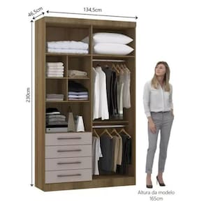 Guarda Roupa Modulado Eucamoveis Paris 4 Portas 4 Gavetas Avela/cinammon Guarda roupa Paris Modulado com 4 portas e 4 gavetas da Luciane e um produto bonito que alem de otimizar a organizacao, vai valorizar a decoracao do seu ambiente. Produzido em MDP com excelente acabamento em PF que garante maior durabilidade e resistencia ao produto. Caracteristicas: Corpo/Caixaria: MDP Dobradica: 26m Corredica: telescopica Puxador: plastico