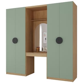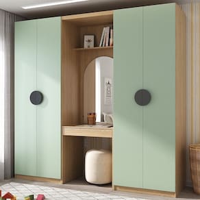 Estilo: Moderno Modular: Sim Peso (kg): 262.095 Garantia: 24 Meses Altura (cm): 230 Descrição: O guarda roupas Joy Kids CabeCasa foi desenvolvido para trazer a experiência de ter seu guarda roupas planejado por uma personal organizer. O móvel possui prateleiras reguláveis e removíveis que se adaptam a diversas necessidades. Conta também com um kit que pode conter gabaritos de dobra para roupas, separadores de cabides e adesivos para identificar todos os espaços. Possui um módulo de sapateira ideal para quem precisa de espaço para guardar seus calçados e ainda pendurar acessórios, além de um nicho que confere mais versatilidade e organização ao espaço, possui montagem flex, podendo ser montado tanto para direita quanto para esquerda. Além disso, tem design atual e alinhado às suas tendências que irão trazer muito mais sofisticação e aconchego para a decoração. Largura (cm): 237 Possui Pés: Não Cor da Porta: Verde Possui Portas: Sim Tipo de Porta: Bater Fita Integrada: Sim Porta Janelada: Não Tipo de Gaveta: Interna Profundidade (cm): 61 Escala de Brilho: Semi-Brilho Gaveta com Chave: Não Possui Calceiros: Não Altura do Espelho: 1000 Material da Porta: MDP Origem do Produto: Nacional Possui Cabideiros: Sim Ambiente Principal: Quarto Infantil Fabricação Própria: Sim Formato do Espelho: Oval Largura do Espelho: 650 Material da Gaveta: MDP Material Principal: MDP Necessita Montagem: Sim Possui Penteadeira: Sim Acabamento da Porta: Finish Foil Nicho com Cabideiro: Sim Acabamento da Gaveta: Finish Foil Espessura do Espelho: 3 Tipo de Guarda-roupa: Modulado Espessura do Fundo (mm): 3 Material da Prateleira: MDP Peso Máximo por Gaveta: 8 Quantidade de Espelhos: 01 Acabamento da Prateleira: Finish Foil Complexidade da Montagem: Alta: deve ser montado por um montador especializado Tipo de Puxador da Porta: Externo Escala de Brilho da Porta: Semi-Brilho Tipo de Puxador da Gaveta: Não Possui Escala de Brilho da Gaveta: Semi-Brilho Peso Máximo por Prateleira: 12 Tipo de Corrediça da Gaveta: Metálica Telescópica Material do Puxador da Porta: Madeira Maciça Possui Organizador de Gaveta: Não Escala de Brilho da Prateleira: Semi-Brilho Tipo de Dobradiça/Corrediça da Porta: Telescópica Recomendações de Uso, Manutenção e Limpeza: Retire o pó com flanela seca. Marca: CabeCasa MadeiraMadeira Cor do Produto: Verde/Avena Itens Inclusos: 1 Roupeiro Nichos com Gavetas, 1 Penteadeira, 1 Roupeiro Cabideiro com Nichos e Manual de Montagem Linha ou Coleção: Joy Kids Cabecasa Sistema de Montagem: Parafuso e Cavilha
