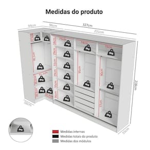 Cor: Branco | Garantia: 3 meses contra de fabricação | Dimensões - Altura: 218 cm | Dimensões - Largura: 421 cm | Dimensões - Profundidade: 56 cm | Produto: Módulos guarda-roupas | Marca: Madesa | Peso aproximado: 277,6 kg | Material: MDP | Estado de Origem: RS | Conteúdo da embalagem: Um Módulos guarda-roupas | Material para Filtro: MDP | Instruções/Cuidados: Utilize um pano limpo, levemente umedecido e seque em seguida a superfície. Não usar produtos químicos ou abrasivos para a limpeza. Recomendamos polir seu móvel com lustra-móveis duas a três vezes por ano. | Produto precisa de Montagem?: Sim | Peso Produto Com Embalagem (Kg): 277,6 | Altura do Produto com Embalagem (cm): 53,7 | Largura Produto Com Embalagem (cm): 75,5 | Comprimento Produto Com Embalagem (cm): 241,1 | Descrição do Tamanho: 218 cm x 421 cm x 56 cm | Nome do Simples no Fornecedor: Guarda-Roupa Modulado Neo + Guarda-Roupa Royale 3 Portas de Correr Branco Madesa | Fabricante: Madesa | RBN: Casa/Móveis/Móveis para o Quarto/Armários e Guarda-Roupas | Quantidade de Gavetas: 4 | Quantidade de portas: 5 | Materiais do corpo: MDP | Quantidade de caixas de embalagem: 7 | Bullet Point 1: Dimensões: 218 cmaltura x 421 cm largura x 56 cm profundidade | Bullet Point 2: A Linha Neo da Madesa foi desenvolvida para oferecer soluções planejadas que unem funcionalidade e sofisticação em cada detalhe. | Bullet Point 3: O Guarda-Roupa Royale, por sua vez, é fabricado em 100% em MDF, conta com três portas de correr. | Bullet Point 4: O acabamento branco de alta resistência garante durabilidade e fácil combinação com diferentes estilos de decoração. | É Frágil: Não | Quantidade de Itens: 1 | Certificação de teste externa: Sim | Modelo: MDNE42100409 | Componentes incluídos: Portas | Precisa de baterias ou pilhas: Não | da peça (part_number): MDNE42100409 | Peso do item (item_weight): ;unit=kilograms | Dimensões do item P x L x A (item_depth_width_height): depth#value=56;depth#unit=centimeters;height#value=218;height#unit=centimeters;width#value=421;width#unit=centimeters | Requer montagem (REQUIRES_ASSEMBLY): Sim | Inclui manual de montagem (INCLUDES_ASSEMBLY_MANUAL): Sim | Cor: Branco