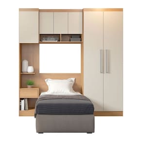 Guarda Roupa Modulado Solteiro Painel Cabeceira 210x218Cm Selene 4 Peças MDP Carvalho MENU - Off White | Carvalho