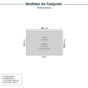 1x Ponte Modular 80cm com 2 Portas Jade Branco Largura: 80 cm Altura: 38 cm Peso: 17,1 kg Profundidade: 54 cm Necessita Montagem: Sim