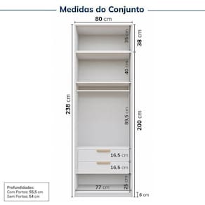 1x Kit 2 Portas para Guarda-roupa Modular 80cm Jade Cabecasa Madeiramadeira Branco Largura: 39,3 cm Altura: 139,2 cm Peso: 16,63 kg Profundidade: 1,5 cm Necessita Montagem: Sim