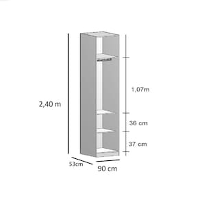 O Guarda Roupa Modular de 2 portas Altezza Trend é ideal para você montar seu quarto utilizando o máximo de espaço possível. Ele pode ser montado tanto apenas com prateleiras, como com prateleiras e 2 cabideiros, como 2 prateleiras e 1 cabideiro. Móvel para compor com toda a linha modulada Altezza. A linha modulada Altezza é ideal para você planejar seu quarto da forma que quiser, utilizando melhor o espaço do seu cômodo, com móveis bonitos e de qualidade! Os módulos são compostos por painéis de 15cm 100% MDF e pintura texturizada com 7 camadas (conferindo maior resistência à riscos e batidas). Com design inspirado nas tendências dos móveis planejados, seu grande diferencial é sua altura de 2,40m (uma das mais altas do mercado). Acabamento da Prateleira: Pintura Texturizada UV Escala de Brilho da Prateleira: Fosco Possui Cabideiros: Sim Acabamento da Porta: Pintura Texturizada UV Escala de Brilho da Porta: Semi-Brilho Material do Puxador da Porta: MDF Ambiente Principal: Quarto codigo_ean: 7900288168979 Complexidade da Montagem: Média: pode ser montado por mais de uma pessoa e/ou necessite de maior conhecimento para montagem Cor: Branco Cor do Produto: Branco Cor Interna: Branco Escala de Brilho: Fosco Espessura da Estrutura (mm): 15 mm Espessura das Portas (mm): 15 mm Espessura das Prateleiras (mm): 15 mm Espessura do Fundo (mm): 3 mm Guarda-Roupa Suporta Até (kg): 100 kg Itens Inclusos: 1 Guarda-Roupa, Kit Ferragens e Manual de Montagem Linha ou Coleção: Altezza Manual de Montagem e Instalação: https://product-hub-prd.madeiramadeira.com.br/800275192/documents/20d04808-c041-44a6-9d1f-5ecfc6c208712926170559817472273236482.pdf Marca: Belmax Material da Porta: MDF Material da Prateleira: MDF Material Principal: MDF modular: Não Montagem Flex: Não Necessita Montagem: Sim Origem do Produto: Nacional Peso: 85 kg Peso Máximo por Prateleira: 15 kg Porta Janelada: Não Possui Calceiros: 01 Possui Espaço para Vestidos Longos: Não Possui Espelho: Não Possui Espelho Interno: Não Possui Ganchos: Não Possui iluminação: Não Possui Nichos: Não Possui Painel de TV: Não Possui Pés: Não Possui Portas: Sim Possui Prateleiras: Sim Produto Montado: Sim Quantidade de Cabideiros: 01 Cabideiro Quantidade de Prateleiras: 02 Prateleiras Recomendações de Uso, Manutenção e Limpeza: Utilizar pano seco. Sistema de Montagem: Parafusos, cavilhas. Tipo de Dobradiça/Corrediça da Porta: Telescópica Tipo de Guarda-Roupa: Solteiro Tipo de Puxador da Porta: Externo