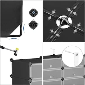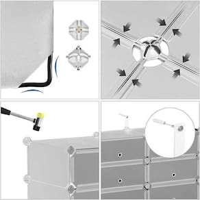 Design Personalizável: Conectores de plástico de dupla face permitem configurar o armário conforme suas necessidades.