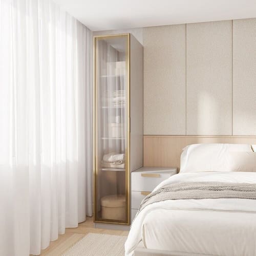 O Guarda Roupa Modular 40cm 1 Porta com Prateleiras Jade CabeCasa foi desenvolvido para trazer a experiência de ter seu guarda roupas planejado de uma forma descomplicada, flexível e adaptável ao seu espaço, estilo e investimento. A porta possui dobradiças com amortecimento garantindo seu fechamento suave, o puxador usinado possui acabamento amadeirado em finish foil adicionando um toque de classe e trazendo calor e elegância ao ambiente. Além disso, possui um maleiro espaçoso e 3 prateleiras removíveis, você terá espaço para organizar suas roupas e acessórios de forma personalizada. A versatilidade de montagem das portas permite abri-las para direita ou para esquerda, se adaptando ao layout do seu espaço. Tenha durabilidade, flexibilidade e estilo em um único móvel.