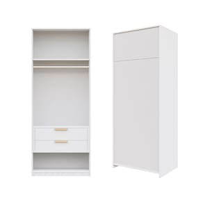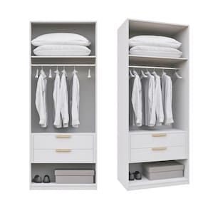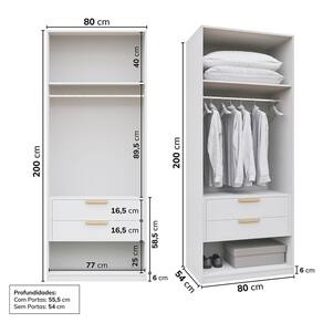 O Guarda Roupa Modular 80cm Sem Portas com Gaveteiro Jade CabeCasa foi desenvolvido para trazer a experiência de ter seu guarda roupas planejado de uma forma descomplicada, flexível e adaptável ao seu espaço, estilo e investimento. Além disso, possui um maleiro espaçoso, um cabideiro metálico, um gaveteiro com 2 gavetas com corrediças telescópicas e um nicho inferior, assim você terá espaço para organizar suas roupas e acessórios de forma personalizada. Tenha durabilidade, flexibilidade e estilo em um único móvel. Possui Cabideiros: 01 Acabamento da Gaveta: Finish Foil Escala de Brilho da Gaveta: Fosco Material do Puxador da Gaveta: MDF Possui Organizador de Gaveta: Não Acabamento dos Pés: Pintura Altura dos Pés: 6 cm Ambiente Principal: Quarto codigo_ean: 7909903759936 Complexidade da Montagem: Média: pode ser montado por mais de uma pessoa e/ou necessite de maior conhecimento para montagem Cor: Branco Cor do Produto: Branco Cor Interna: Branco Escala de Brilho: Fosco Gaveta com Chave: Não Guarda-Roupa Suporta Até (kg): 40 kg Itens Inclusos: 1 Módulo Guarda Roupa , Manual de Montagem, Kit Ferragem Linha ou Coleção: Jade Manual de Montagem e Instalação: https://product-hub-prd.madeiramadeira.com.br/917411/documents/5d529a12-9056-40a8-ac41-3e43c85bad572072426491717189127009967.pdf Material da Gaveta: MDP Material dos Pés: MDP Material Principal: MDP modular: Sim Necessita Montagem: Sim O Módulo Pode ser utilizado individualmente: Sim Origem do Produto: Nacional Peso: 61,47 kg Peso Máximo por Gaveta: 5 kg Possui Calceiros: Não Possui Espaço para Vestidos Longos: Não Possui Espelho: Não Possui Espelho Interno: Não Possui Ganchos: Não Possui Nichos: Não Possui Painel de TV: Não Possui Pés: Rodapé Possui Portas: Não Possui Prateleiras: Não Possui Sapateira: Não Produto Montado: Sim Quantidade de Gavetas: 02 Gavetas Recomendações de Uso, Manutenção e Limpeza: Para limpeza utilize pano macio, seco ou ligeiramente umedecido com água. Não utilize sapólios, polidores e ou produtos que contenham carga abrasiva, para evitar danos ao produto. Evitar que o móvel fique exposto a luz solar direta, ou em ambientes de umidade e calor excessivo. Não colocar carga excessiva de peso nas gavetas e prateleiras, para evitar acidentes ou danos ao produto. O móvel deverá ficar nivelado, desta forma, as gavetas e as portas terão o bom funcionamento, evite arrastá-los, isso pode danificar o móvel. Sapatas Niveladoras: Não Sistema de Montagem: Cavilhas, parafusos e cola Suporta Até (kg): 40 kg Tipo de Corrediça da Gaveta: Metálica Telescópica Tipo de Gaveta: Interna Tipo de Guarda-Roupa: Closet Tipo de Puxador da Gaveta: Externo