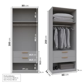 Nosso Guarda Roupa foi concebido para se adaptar ao seu estilo de vida dinâmico. Com a flexibilidade de remover as portas, você pode facilmente transformar seu Guarda Roupa em um closet aberto, exibindo suas roupas favoritas com elegância e acessibilidade. Tire o máximo proveito do espaço disponível e adicione um toque moderno ao seu ambiente, permitindo que seu estilo brilhe sem limites.
