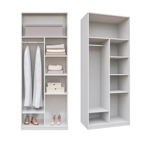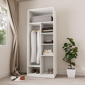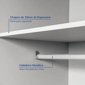 Guarda-roupa Modular 80cm sem Portas com Prateleiras Jade Cabecasa Madeiramadeira Branco. O Guarda Roupa Modular 80cm Sem Portas com Prateleiras Jade CabeCasa foi desenvolvido para trazer a experiência de ter seu guarda roupas planejado de uma forma descomplicada, flexível e adaptável ao seu espaço, estilo e investimento. Além disso, possui um maleiro espaçoso, 4 prateleiras removíveis e um cabideiro metálico que pode ser utilizado para longos quando a prateleira inferior for removida, você terá espaço para organizar suas roupas e acessórios de forma personalizada. Tenha durabilidade, flexibilidade e estilo em um único móvel. Recomendações de Uso, Manutenção e Limpeza: Para limpeza utilize pano macio, seco ou ligeiramente umedecido com água. Não utilize sapólios, polidores e ou produtos que contenham carga abrasiva, para evitar danos ao produto. Evitar que o móvel fique exposto a luz solar direta, ou em ambientes de umidade e calor excessivo. Não colocar carga excessiva de peso nas gavetas e prateleiras, para evitar acidentes ou danos ao produto. O móvel deverá ficar nivelado, desta forma, as gavetas e as portas terão o bom funcionamento, evite arrastá-los, isso pode danificar o móvel.