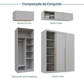 Informação Complementar: 1x Guarda-roupa Modular 80cm sem Portas com Prateleiras Jade Cinza Urbano