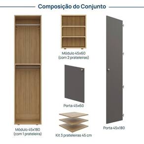 Largura do Conjunto: 45 cm Linha ou Coleção: Linha Frame Marca: CabeCasa MadeiraMadeira Material da Porta: MDP Material da Prateleira: MDP Material do Puxador da Porta: Metal Material Principal: MDP Necessita Montagem: Sim Origem do Produto: Nacional Peso Máximo por Prateleira: 5 Possui Cabideiros: 1 Possui Espelho: Não Possui Possui Portas: 2 Recomendações de Uso, Manutenção e Limpeza: Utilize um pano macio umedecido com água e sabão neutro, seguido de pano seco. Não utilize produtos químicos ou abrasivos para limpeza, pois estes danificam o revestimento do móvel. Sistema de Montagem: Cavilha, Parafuso, Minifix e prego Tipo de Dobradiça/Corrediça da Porta: Metálica Tipo de Puxador da Porta: Externo