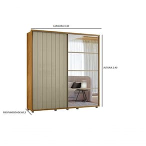Guarda Roupa Monet Mdf-c/ Espelho-2 Porta De Correr Com Amortecimento-4 Gavetas Com Corrediças Telescópicas O Guarda-roupa Monet combina design e tecnologia para transformar seu ambiente. Suas portas de correr com amortecimento garantem um fechamento suave e silencioso, enquanto os cabideiros extensíveis facilitam o acesso às roupas e otimizam o espaço interno. O ripado angular adiciona um toque de exclusividade, e a moldura envoltória de 25mm valoriza cada detalhe com um acabamento sofisticado. Para completar, suas 4 gavetas com corrediças telescópicas oferecem organização impecável. Com 2,30m de largura, ele se adapta perfeitamente ao seu espaço. 100% MDF Pintura UV Dimensões (L x A x P): 2,300 x 2,400 x 0,605m Acompanha espelhos 4 Gavetas Corrediças telescópicas 2 Portas de correr com amortecimento 2 Puxadores em Alumínio Pés em Poliestireno de 50mm 6 Nichos 8 Prateleiras Moldura envoltória: MDF de 25mm Sistema de montagem Girofix Peso total suportado: 132Kg Garantia: 3 Meses- ATENÇÃO --Montagem por conta do comprador, a não oferece de montagem.**Não nos responsabilizamos pelo em escada e elevadores**Se possuir dúvida, deixe uma pergunta antes de finalizar a compra
