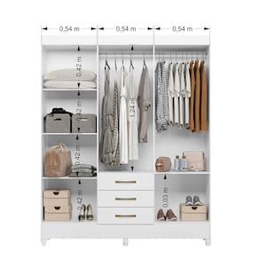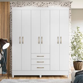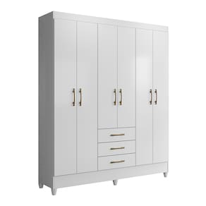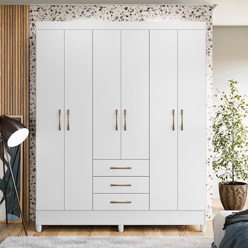 Guarda-Roupa Moval New Olímpia com 165cm de Largura, 6 Portas e 3 Gavetas - Branco