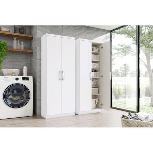 Armário multiuso Margarida é a opção ideal para organizar roupas ou objetos, ele pode ser utilizado no quarto, na área de serviço ou na despensa. Composto por 2 portas com amplo espaço interno, possuindo 6 prateleiras. A estrutura é produzida em MDP e MDF com revestimento em pintura UV, interno no padrão trama, que imita tecido, o que garante um móvel resistente e durável. As dobradiças são metálicas para proporcionar maior firmeza na hora de abrir e fechar as portas. Compacto e com um design discreto, o margarida mantém sua casa ainda mais organizada e completa.