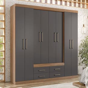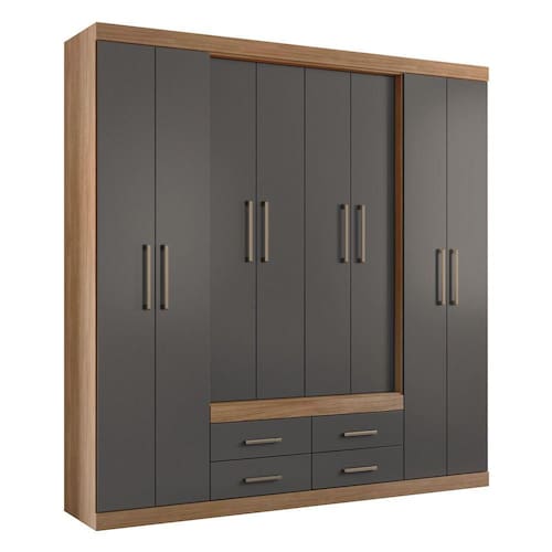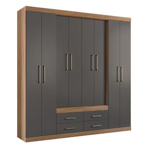 - 08 Portas Com Dobradiças Metálicas - 09 Prateleiras - 03 Cabideiro/Calceiro Eco Frizado Em Alumínio - 04 Gavetas Com Corrediças Metálicas - Amplo Maleiro - Espaço Para Sapatos - Puxadores Em Pvc