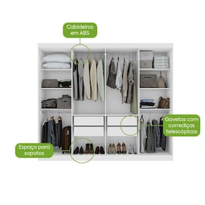 Guarda-roupa New Andara 8 Portas 4 Gavetas Com Espelho E Pés Branco