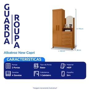 Guarda Roupa New Capri Cômoda 2 Portas 4 Gavetas Albatroz Um único produto, várias soluções para o seu dia a dia! Se você tem pouco espaço, e precisa manter suas roupas e calçados organizados, mas não abre mão do seu cantinho para se maquiar, o Guarda Roupa Cômoda New Capri é a solução perfeita! Confira mais detalhes: