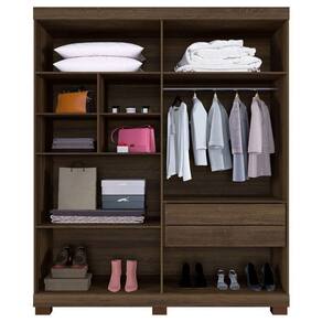 Guarda Roupa New Master 4 Portas 3 Gavetas 8 Prateleiras Imbuia O Guarda-Roupa New Master 4 portas e produzido em mdp 15 mm que garante a vida util muito maior. Contem 4 portas e 8 prateleiras e nichos que acomodam suas roupas com maior conforto. Contem 3 gavetas espacosas com corredicas telescopicas que garante suavidade e durabilidade. cabideiro em aluminio, puxadores madeirados e pes inclusos sua fabricacao utiliza a linha mdp perffect, que une a sustentabilidade a inovacao tecnologica, proporcionando durabilidade e facil limpeza; inspirando sofisticacao ao mobiliario. Sua pintura uv conta com boa resistencia, e facil de limpar e e ecologicamente correto, pois utiliza madeira de reflorestamento, evitando o desmatamento. Caracteristicas: Material principal: MDP Espessura da chapa: 15 mm Escala de brilho: semibrilho Acabamento: Pintura UV Sistema de montagem: parafuso, cavilha e cantoneiras metalicas