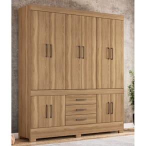 Roupeiro com divisões e compartimento bem distribuídos oferecendo compartimentos exclusivos para vários pares de sapatos, maleiro espaçoso e prateleira. Gavetas externas com deslize perfeito e pés em PVC que facilitam a limpeza do piso ao redor do produto. Puxadores super elegantes na cor bronze.Características:10 Portas3 Gavetas2 PrateleirasCabideirosPés em PVCDimensões:Altura: 217 cmLargura: 192 cmProfundidade: 47 cmPeso: 105 kgVolumes: 2Para garantir a qualidade do produto dentro da embalagem, as caixas são revestidas por um plástico termoencolhível e todas as peças são separadas por isomanta, tudo para preservar e evitar o atrito entre as peças dentro da embalagem. Você contará também com um manual com o passo a passo para auxiliar no momento da sua montagem.
