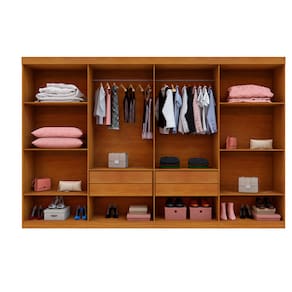Encante-se Com o Guarda Roupa New Premium, um móvel que combina funcionalidade e Durabilidade para acomodar suas roupas com o máximo de conforto. Produzido em chapa de 15mm MDP, este guarda roupa garante uma vida útil muito maior, proporcionando um excelente custo-benefício. Com 8 portas, 8 prateleiras e nichos, este roupeiro oferece amplo espaço para acomodar suas roupas e acessórios de forma organizada e eficiente. Além disso, conta com 4 gavetas espaçosas equipadas com corrediças telescópicas, garantindo suavidade e durabilidade no uso diário.O cabideiro em alumínio é resistente e ideal para pendurar suas roupas sem danificá-las, enquanto os puxadores amadeirados na cor do produto adicionam um toque de elegância e sofisticação ao móvel.