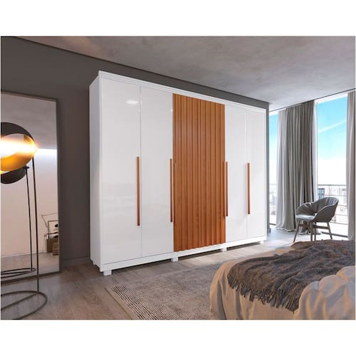 Se você gosta de manter o seu quarto sempre arrumado, o guarda-roupa casal Olimpo é o móvel ideal. Oferecer total conforto e comodidade para o seu lar, ele conta com um design moderno, que combina facilmente com todos os estilos de decoração e que deixará o seu quarto com um visual lindo. Ele tem 6 portas corrediças, 6 gavetas, 4 maleiros fechados na lateral, 2 portas ripadas real e pe.