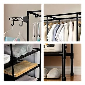 - Versatilidade: O design do cabideiro quadruplo permite exibir suas peças de forma prática, tornando-o perfeito para roupas, calçados e até itens decorativos.