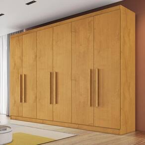 Caracteristicas do produto: Marca: Mademarcs Modelo: Oslo Material: 100 MDF (Madeira de Reflorestamento) Acabamento: Verniz UV Escala de Brilho: Semi-brilho Sistema de montagem: Parafuso, Minifix e Cavilha Quantidade de portas: 06 Quantidade de gavetas: 04 Quantidade de prateleiras: 11 Corredicas: Telescopicas Puxadores: Madeira Cabideiros: Aluminio Divisao interna: ELE e ELA Costa parafusada: Sim