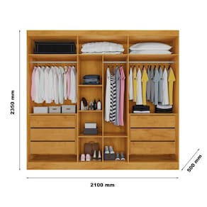 Inclui um compartimento dedicado para malas e roupas de cama, além de uma modulação especial para roupas longas, garantindo que cada peça tenha seu lugar.