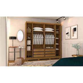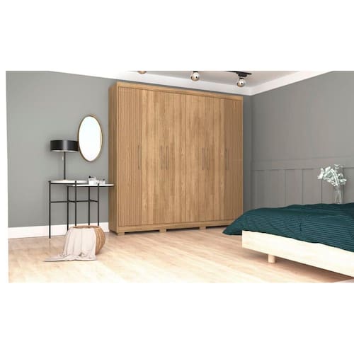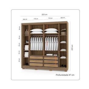 O guarda-roupa Casal Pernambuco é a escolha ideal para quem busca elegância e funcionalidade em um único móvel. Com suas 6 portas e 6 gavetas, ele oferece amplo espaço para organizar roupas e acessórios de forma prática. A frente é confeccionada com espessura de 15 mm, enquanto o corpo, com 12 mm, proporciona equilíbrio entre robustez e leveza. As gavetas contam com corrediças metálicas, garantindo suavidade ao abrir e fechar, e os puxadores em plástico são discretos e modernos. O cabideiro de alumínio completa o design, oferecendo resistência para suportar as peças penduradas, tornando o Pernambuco um item indispensável para qualquer quarto.