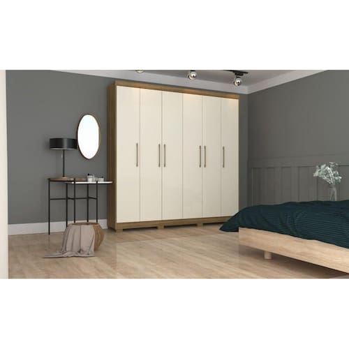 Guarda Roupa Pernambuco 6 Portas e 6 Gavetas - Cor Nature / Champanhe - Vila Rica - Marrom