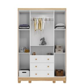 O Guarda-roupa Móveis Peroba Junior Cor Branco comAmêndoa referencia 4688.87, com puxadores em ABS, cabideiro metálico, 2 opções de rodapé, corrediças telescópicas, 100% MDF e sistema antitombamento. É a escolha ideal para o quarto infantil, combinação funcionalidade e estilo clássico. Com quatro portas e três gavetas, oferece amplo espaço para organizar roupas e acessórios, mantendo o ambiente sempre arrumado. Sua estrutura em 100% MDF garante durabilidade e resistência, suportando até 60 kg. Esta guarda-roupa se adapta perfeitamente a diferentes espaços. O cabideiro e o espaço para calçados proporcionam praticidade no dia a dia, enquanto as corrediças telescópicas nas gavetas garantem um uso suave e eficiente. Ideal para quartos de bebês e crianças, o design em branco traz leveza e luminosidade ao ambiente, permitindo que você crie um espaço acolhedor e encantador. A montagem é necessária, mas o resultado final vale a pena, transformando o quarto em um lugar organizado e estiloso.
