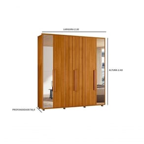 Guarda Roupa Portinari Com Espelho Mdf-6 Portas De Abrir Com Amortecimento - 4 Gavetas Com Corrediças O Guarda Roupa Portinari combina funcionalidade e design sofisticado. Suas portas com ripado angular trazem um visual moderno, enquanto os cabideiros extensíveis em alumínio otimizam o uso do espaço interno. A moldura envoltória de 25mm confere um acabamento elegante, e as dobradiças de 35mm com sistema de amortecimento garantem um movimento suave ao abrir e fechar. Com 4 gavetas espaçosas e corrediças telescópicas, a organização fica impecável. Para um toque extra de sofisticação, os puxadores em MDF estilo ?cava? complementam o design minimalista. Sua largura de 2,30m garante equilíbrio entre elegância e funcionalidade. 100% MDF Acompanha Espelhos Pintura UV Dimensões (L x A x P): 2,300 x 2,400 x 0,560m 4 Gavetas Corrediças Telescópicas 6 Portas Dobradiças: metálicas de 35mm com sistema de amortecimento 6 Puxadores em MDF 8 Pés em Poliestireno de 50mm 8 Nichos 8 Prateleiras Moldura envoltória: MDF de 25mm Sistema de montagem: Girofix Garantia: 3 Meses- ATENÇÃO --Montagem por conta do comprador, a não oferece de montagem.**Não nos responsabilizamos pelo em escada e elevadores**Se possuir dúvida, deixe uma pergunta antes de finalizar a compra