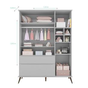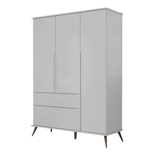 Guarda Roupa Retrô Melissa 3 Portas 2 Gavetas Phoenix Cor Cinza