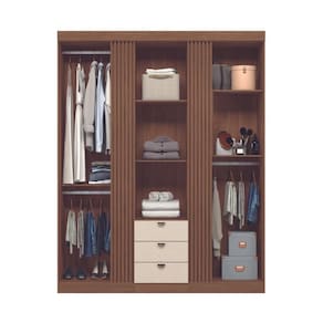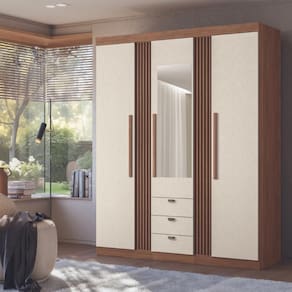 Esse Guarda Roupa é perfeito para você que procura sofisticação e versatilidade, possui detalhes ripados em madeira garantindo a elegância do ambiente.