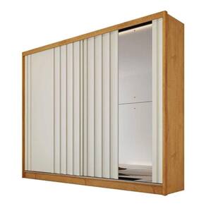 Guarda Roupa Solteiro Ripado com Espelho 2 Portas 4 Gavetas - Galati-Peroba/Off White - Made Marcs