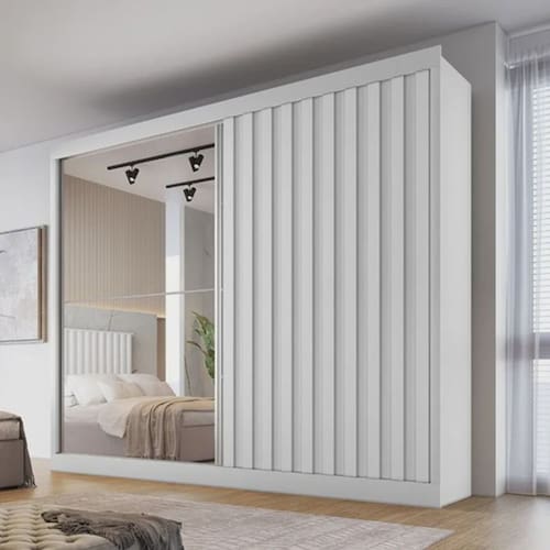 Guarda Roupa Ripado com Espelho - Atlanta-Branco Acetinado - Made Marcs O Guarda Roupa Atlanta vai proporcionar um ambiente aconchegante mantendo um visual sofisticado e funcional. Composto por peças de extrema qualidade e com excelente espaço interno bem distribuídos, oferecendo máxima organização de forma prática. Fabricado em 100% MDP, 2 portas de correr, possui 4 gavetas com corrediças telescópicas, puxadores embutidos e cabideiros em alumínio. Amplo espaço interno. Aproveite! Faz parte deste ambiente: 1 Guarda Roupa Casal Ripado com Espelho 2 Portas 4 Gavetas - Atlanta - Made Marcs Obs: Objetos de decoração não inclusos. Particularidades do guarda-roupa: Características: - Ripado em MDF; - 100% MDF, chapas de 15mm; - Gavetas com corrediças telescópicas; - Cabideiros em alumínio; - Modulado para roupas longas; - Dobradiças modernas e reforçadas; Dimensões: Altura: 2,18metros Largura: 2,06 metros Profundidade: 51 centímetros Informações Importantes: -Produtos podem apresentar diferenças de tonalidades entre a foto na tela e o produto real, devido a calibração de cor de tela. -Limpar com flanela ou pano macio. Não utilizar álcool. Não utilizar produtos abrasivos ou corrosivos. -Nós prezamos pela qualidade da entrega em primeiro lugar, trabalhamos com transportadoras altamente selecionadas e os melhores materiais de embalagem. -A montagem é de total responsabilidade do comprador. Antes de comprar, verifique o espaço disponível para a montagem. -Certifique-se de que o produto caiba em elevadores e vãos de escadas, não fazemos içamentos. Quaisquer despesas deste tipo ficam a cargo do cliente -Garantia de 3 meses contra defeitos de fabricação.