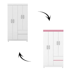 Guarda Roupa Roupeiro 04 Portas Lotus Branco Rosa Flex Demóbile