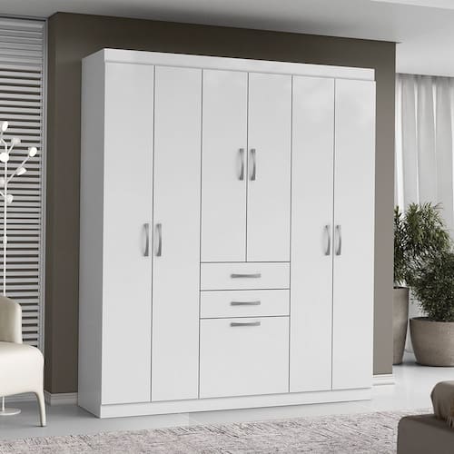 Características: Estrutura em MDP Pintura semi-brilho 07 Portas articuladas com dobradiças metálicas 02 Gavetas com corrediças metálicas Cabideiro de Madeira Revestido em PVC Amplo espaço interno Puxador de Plástico