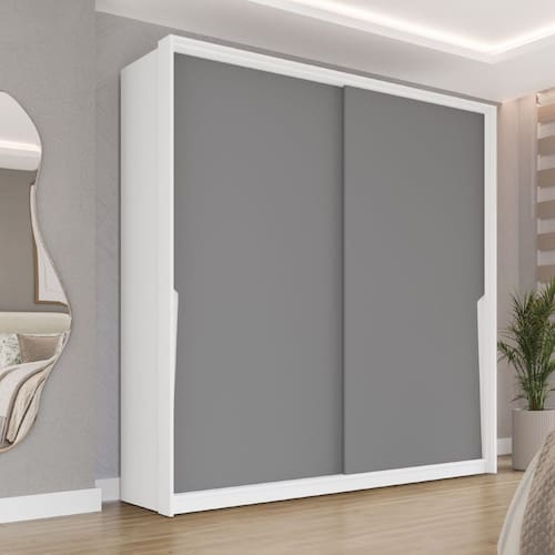 Guarda Roupa Roupeiro 2 Portas de Correr 2 Gavetas Porto Branco Cinza Politorno Móveis - Branco | Cinza