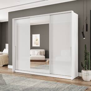 Guarda Roupa Roupeiro 3 Portas de Correr 4 Gavetas com Espelho Porto Branco Politorno Móveis