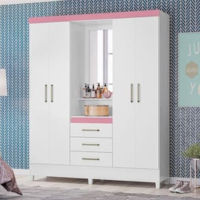 Guarda Roupa Roupeiro Capelinha 04 Portas Pérsia Branco Rosa Flex Demóbile