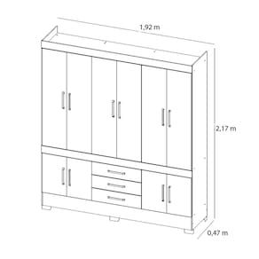 Características: Estrutura em MDP Acabamento em Pintura UV 10 Portas com dobradiças metálicas 03 Gavetas com corrediças metálicas Cabideiro em Madeira Revestida Puxadores em Plástico ABS Pés em PVC.