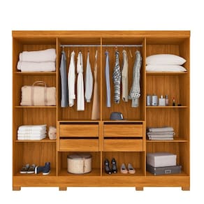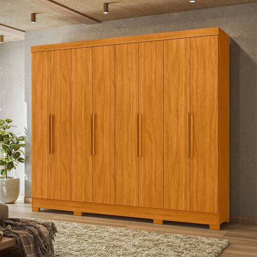 Características: Estrutura em MDP 08 Portas com dobradiças metálicas 04 Gavetas com corrediças metálicas Cabideiros em alumínio Puxadores em MDF Portas em MDF com detalhes frisados Excelente distribuição interna