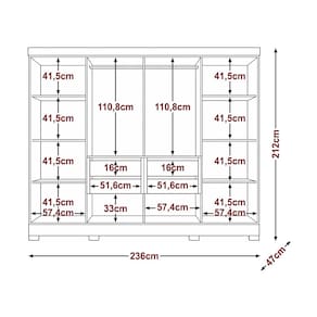 Dimensões: Altura: 212 cm Largura: 236 cm Profundidade: 47 cm