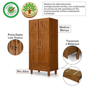 ATENÇÃO: As imagens são meramente ilustrativas e podem sofrer variações de cor e pequenos detalhes de acordo com o seu monitor, iluminação do ambiente e percepção visual.Guarda Roupa Roupeiro Modulado Munique Estrutura em Madeira MaciÃa Castanho