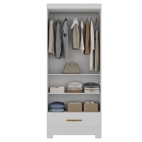Possui várias opções de montagem interna e prateleiras espaçosas proporcionam um ambiente perfeito para guardar suas roupas, sapatos e até mesmo seus itens mais delicados, mantendo tudo sempre à mão. Ele conta com gaveta que possui corrediças telescópicas, cabideiro em alumínio e pés.
