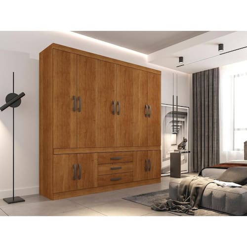 Guarda Roupa Roupeiro New Parma 10 Portas 3 Gavetas Sem Espelho Cinamomo - Sallêto