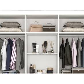 Com um visual elegante e harmônico, o Roupeiro New Parma se encaixa facilmente em vários estilos de decoração, tem divisão interna simétrica que oferece praticidade e organização, com corrediças metálicas nas gavetas, parte interna branca, gavetões externos, puxadores champagne.